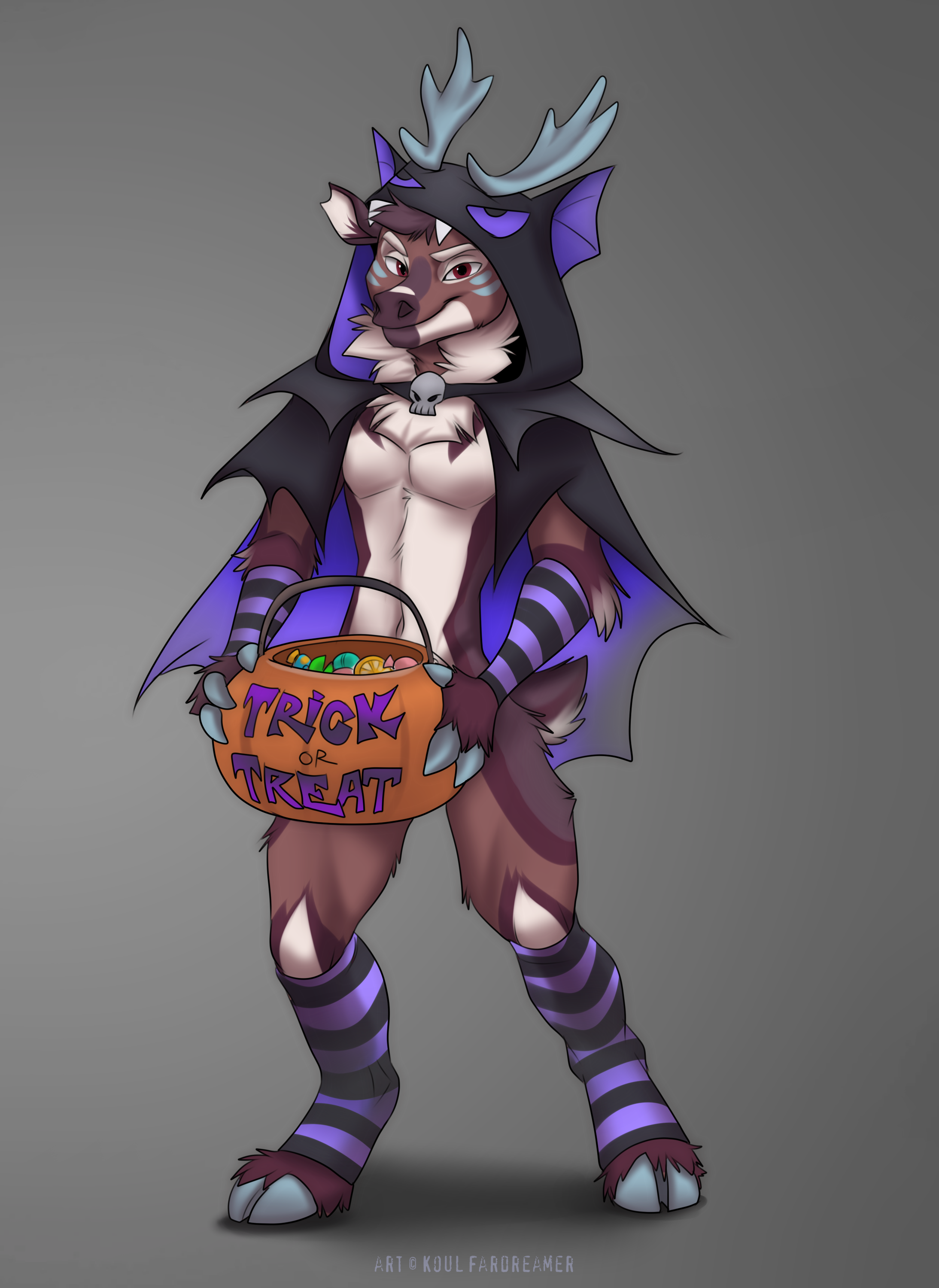 Is West getting ready to give out candy for a night or coming back from a full night of collecting? Either way looks like his costume was more focused on the limbs than his torso