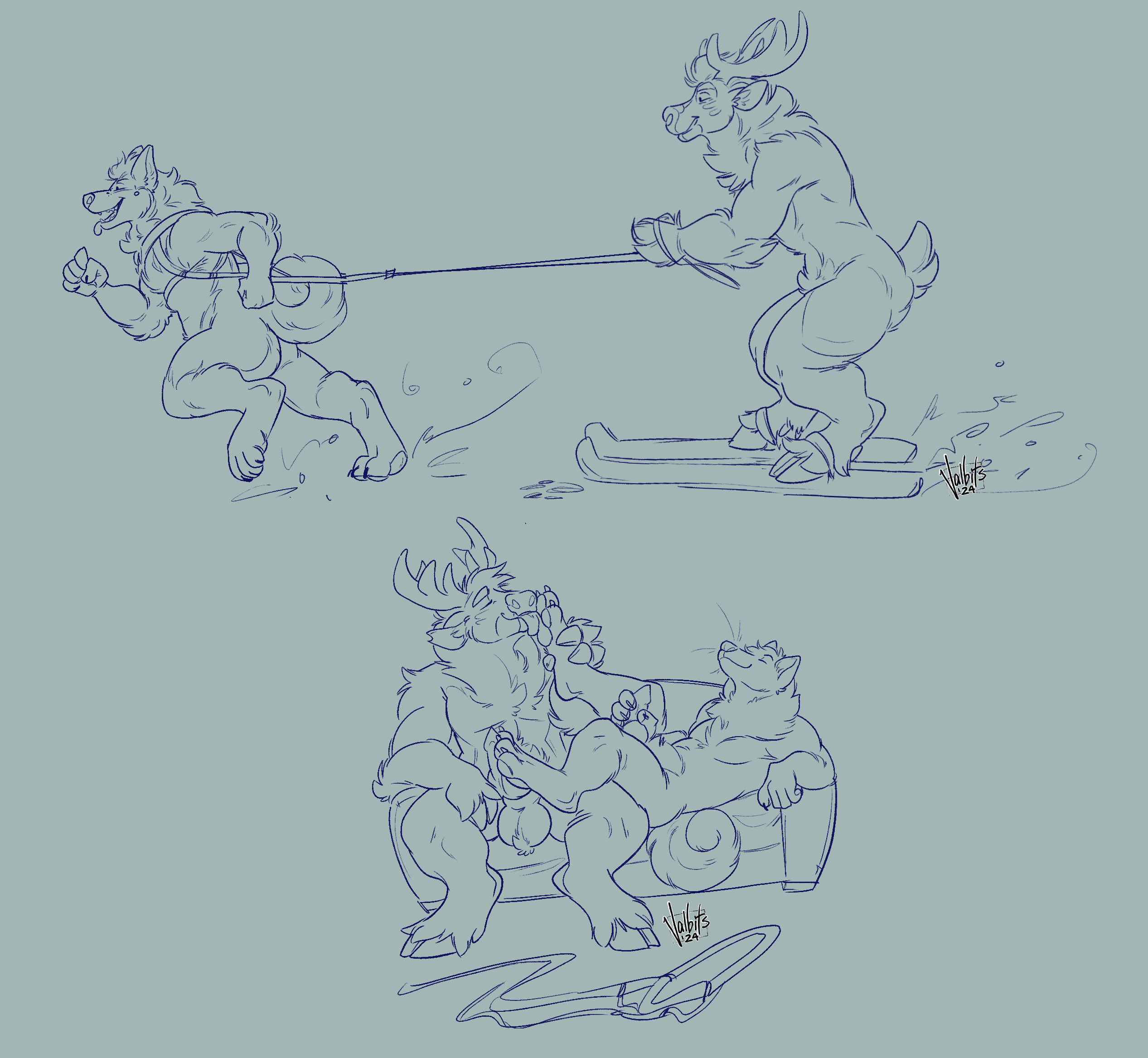 One of the hardest things about sled dog training is that you have to be pulling weight to really exercise the right muscles, luckily West was ready to offer his services and be pulled around the snow by Alex. Though of course these services don't come for free... West likes to unwind after a hard workout on the couch and underpaw
