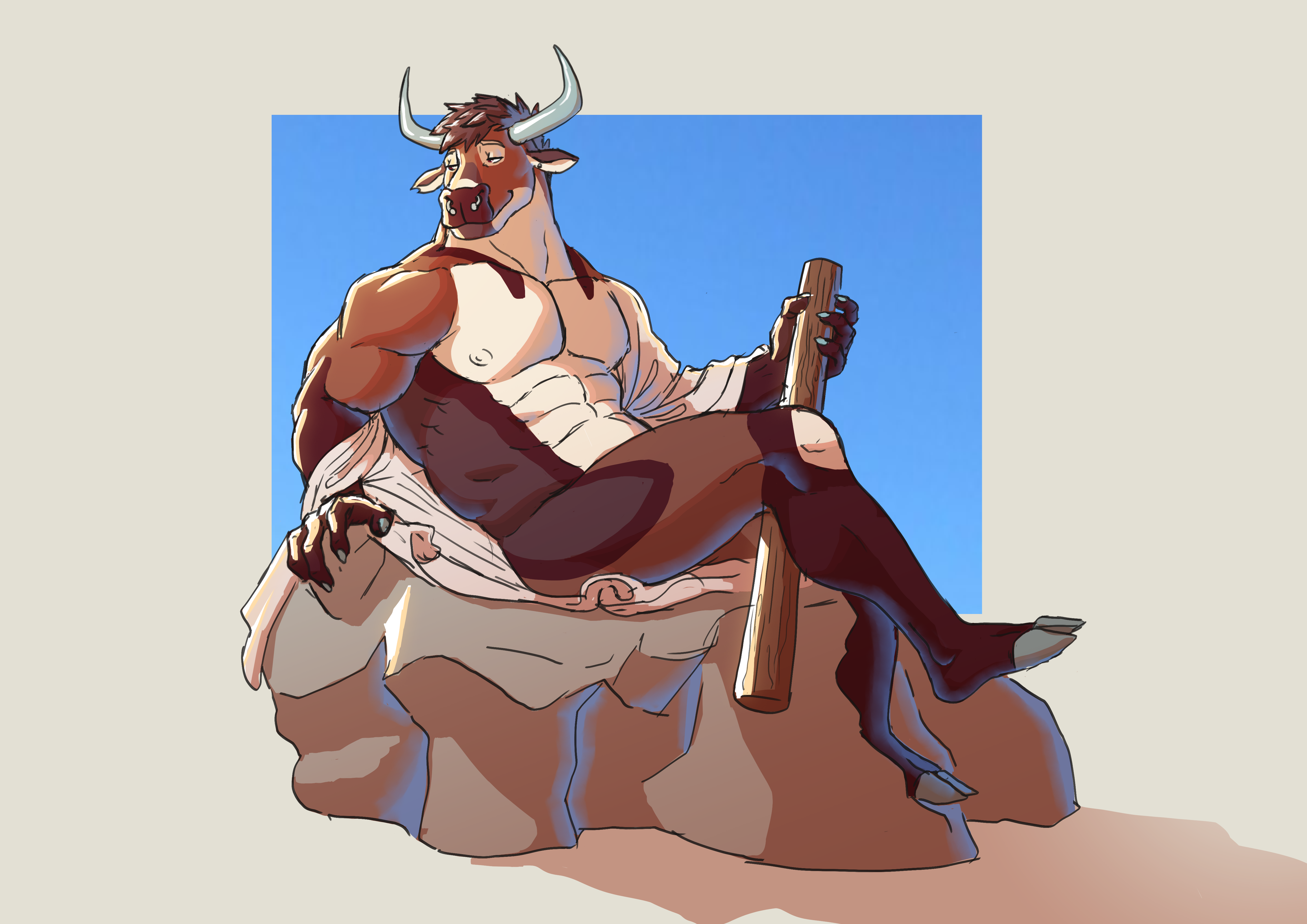 In the spirit of March Moo-dness West has taken to sporting some horns rather than antlers for once. This was a study of Greek statues, specifically the Piazza Navona fountain